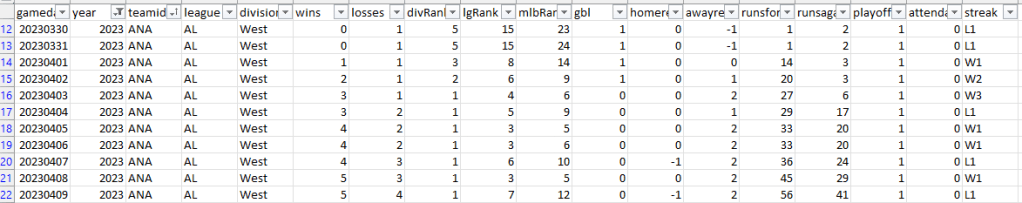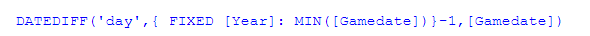 - Game Number: DateDiff calculation looking at the first game date of the year vs. the game date as the season elapses