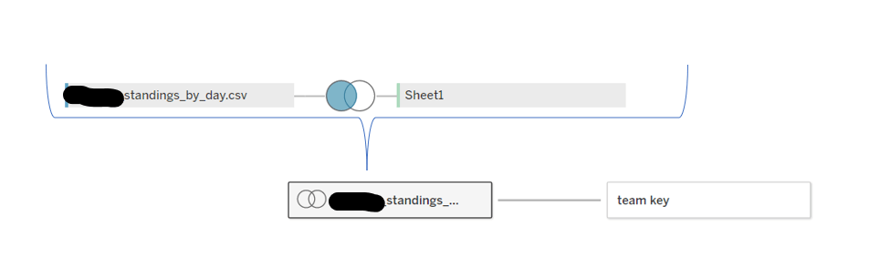 Using Tableau, I joined all three datasets. I left joined the standings dataset (we will refer to it as our activity dataset) to the team mapping list. I then utilized a relationship join (tableau default) to the WS Champions dataset to create a flag for those specific teams that won the World Series.