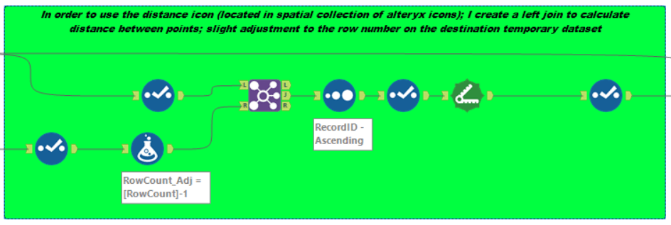 Use of the multi-row formula to create stage number identifiers in the fully unioned data set. Also used the ‘ST_CREATEPOINT’ formula that takes the numeric latitude and longitude points to create a geo-spatial point for plotting in Alteryx.