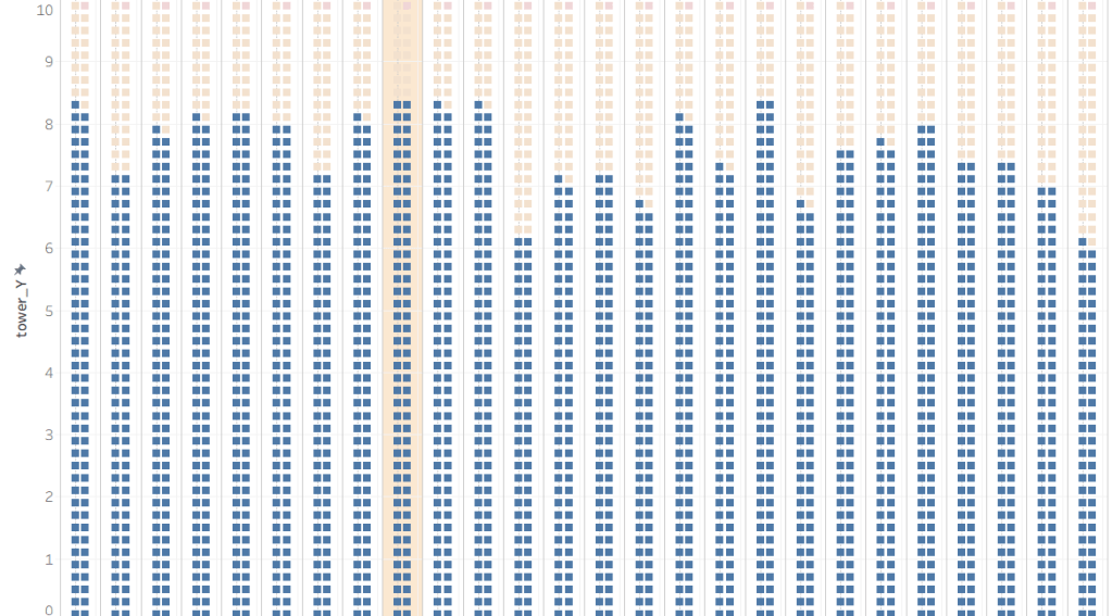 Tower_Y achieves proper height display of the square shapes are more importantly displays the correct proportion of each films bar shape across the whole visual.
